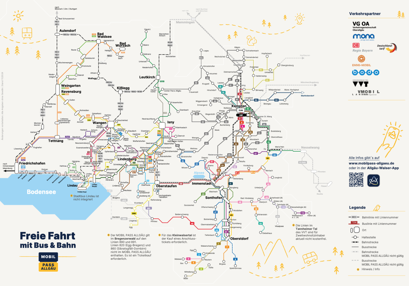 Bitte beachte: Die touristische Privatbuslinie 8 in Richtung Spielmannsau, die Walserbusse ab Walserschanz sowie die Buslinie Giebelhaus (Hinterstein) sind nicht im MOBIL PASS ALLGÄU enthalten und kostenpflichtig.